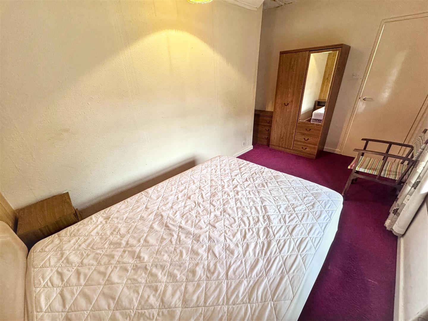 Built-in full height cupboards with sliding doors. Further built-in cupboard. Carpet, light fitting, hatch to loft space and high level cupboard with electricity meter.