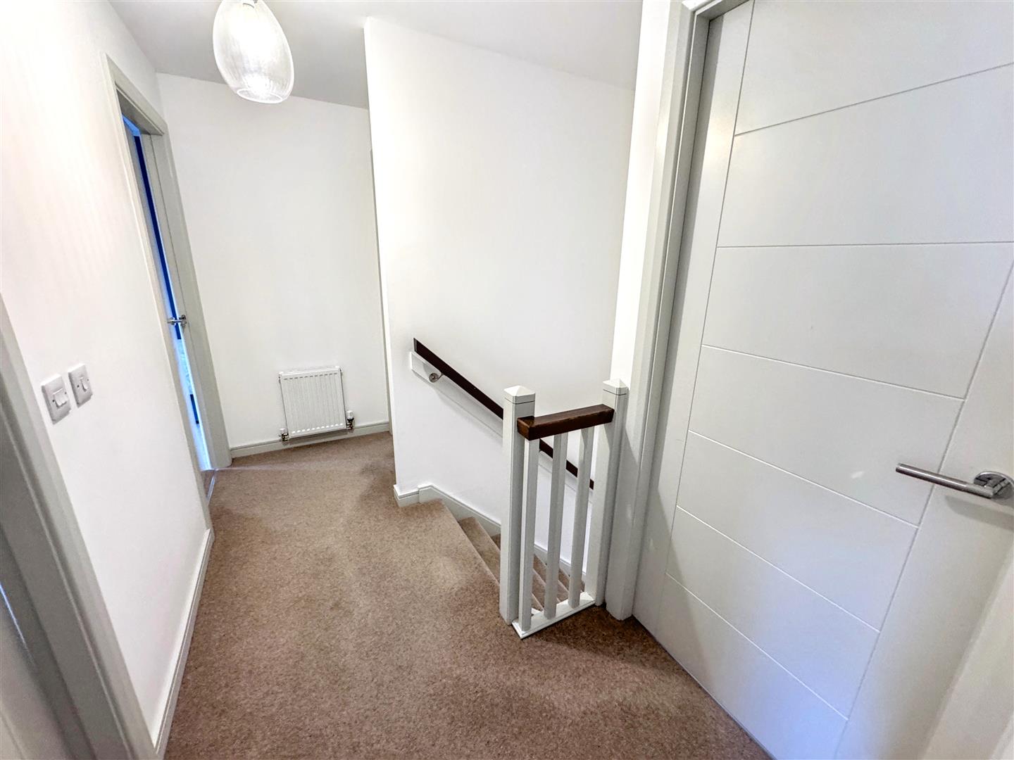 Carpeted staircase to upper landing. Doors to all bedrooms and bathroom. Pendant light and smoke detector.