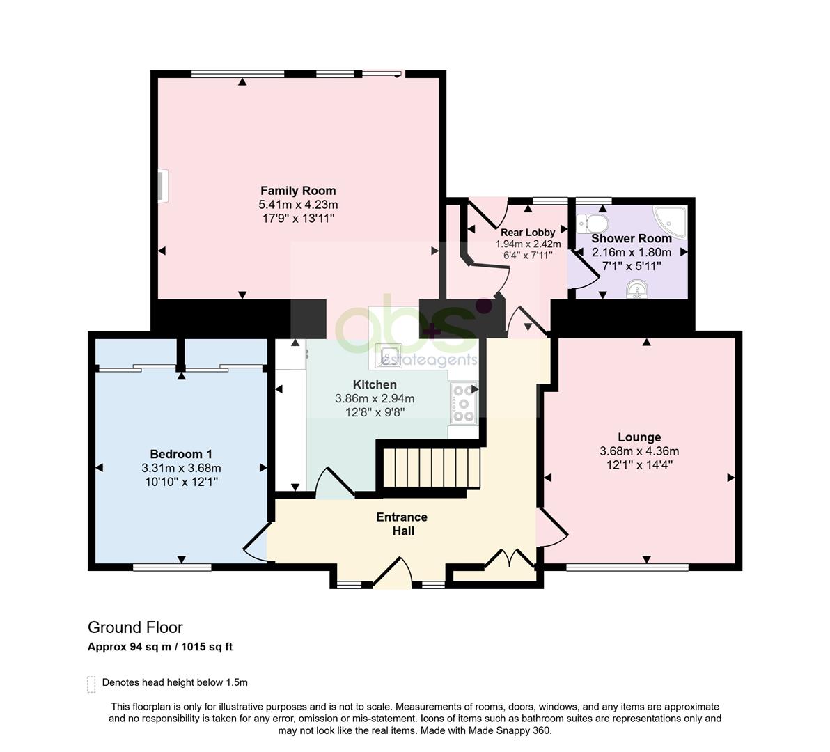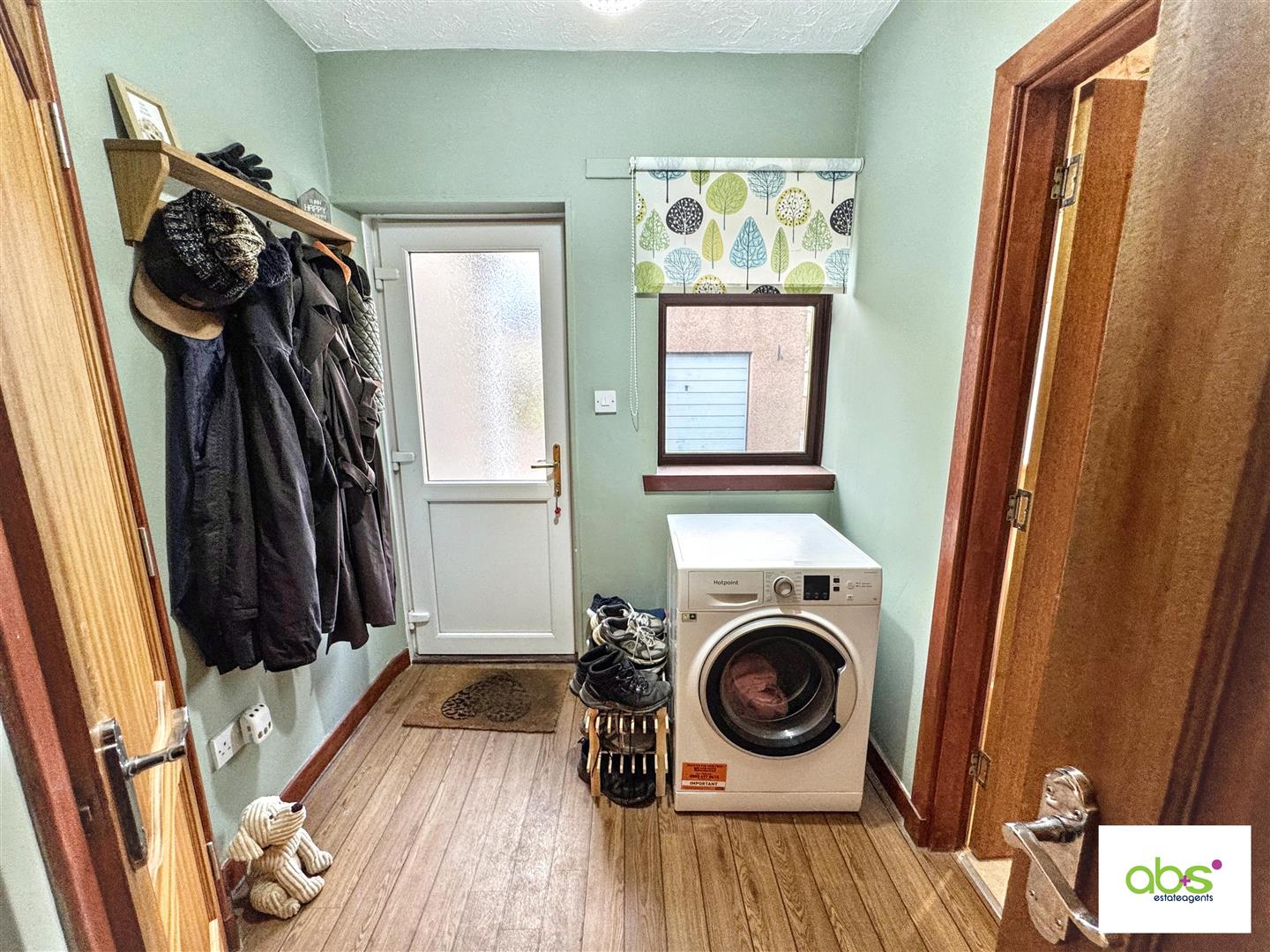 Handy rear Lobby with fitted cupboard. Rear facing window and part glazed door to back garden. Wall mounted coat hooks. Space and plumbing for washing machine. Ceiling light and wood effect flooring. Door to :-