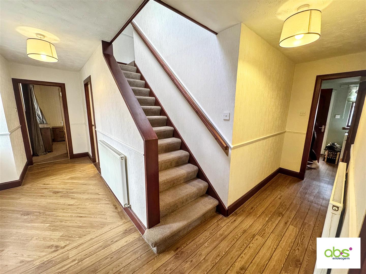 Most attractive entrance to the property with door and windows to either side. L shaped hallway staircase to the upper floor and decorative flooring.
