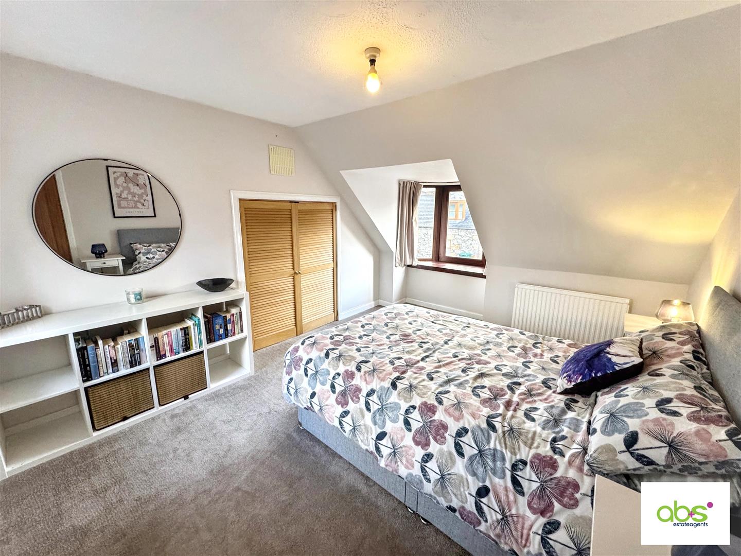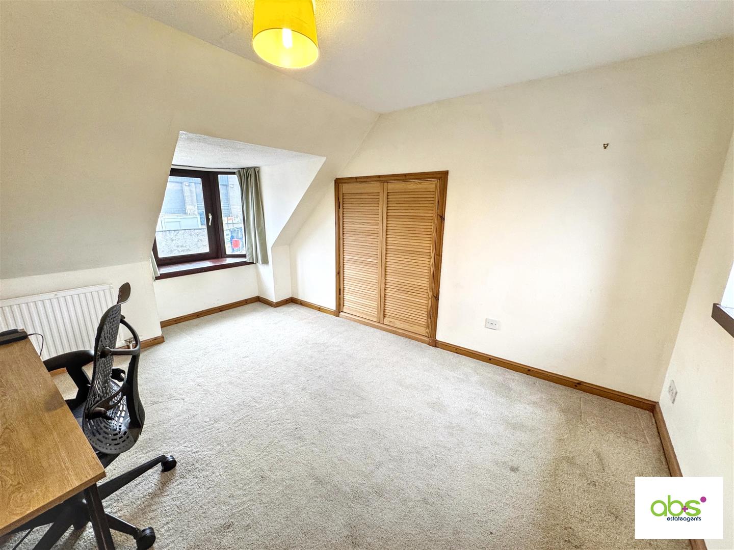 Double bedroom with part coombed ceiling and dormer bay window to the front of the property plus additional rear facing window with lovely views over the garden, houses and beyond to the Conval Hills. Double wardrobe. Ceiling light fitting, radiator and carpet.