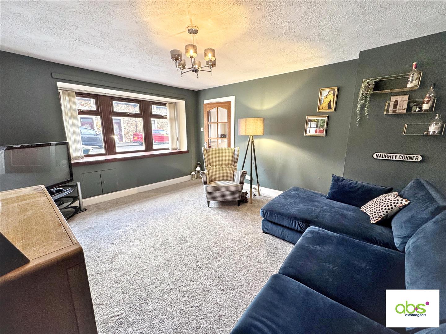 Elegantly appointed Lounge with triple front facing windows, blinds in place and a deep display shelf. 6 arm light fitting, radiator and quality carpet.