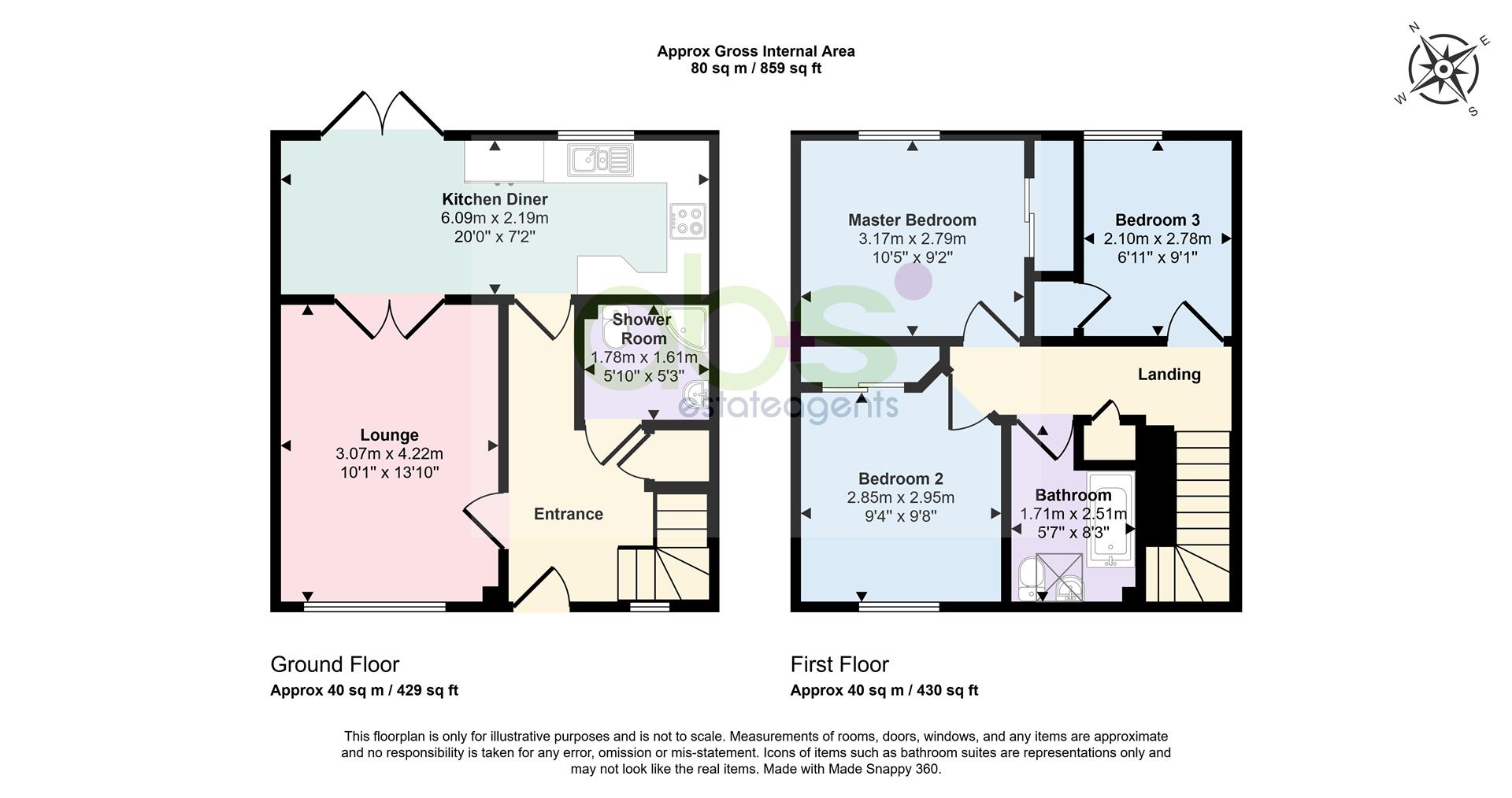 Front door with opaque glazed leads to the entrance hall. Doors to Lounge, Kitchen and Shower Room. Staircase to upper floor. Fitted carpet, radiator, smoke detector andlight fitting.