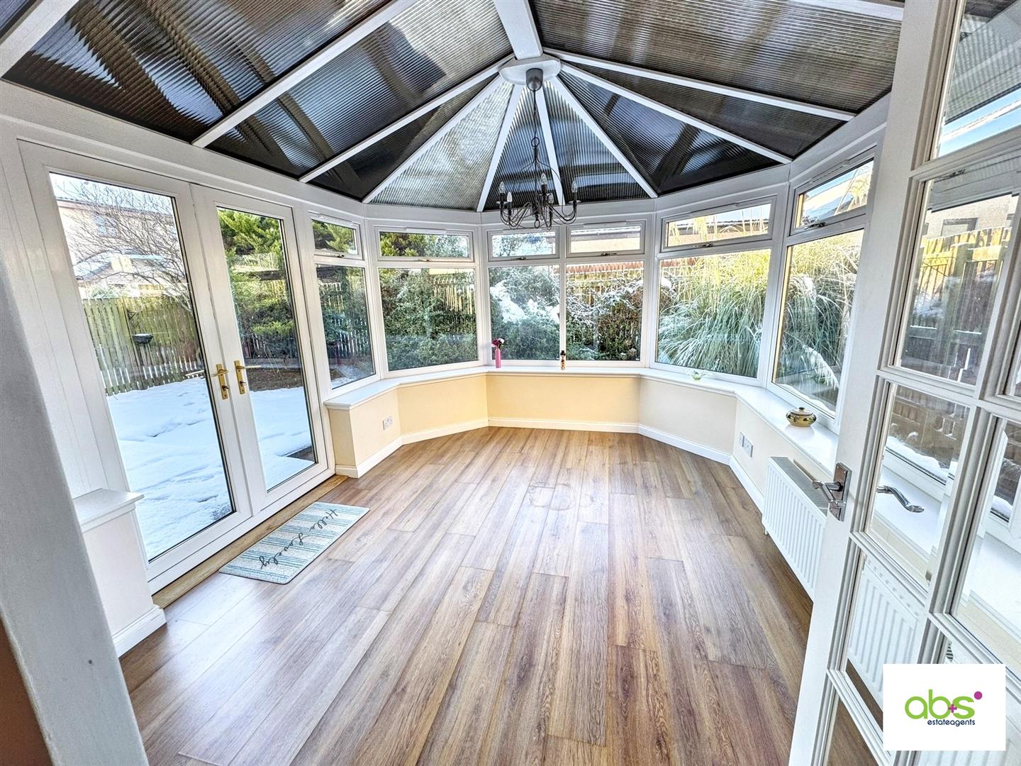 Excellent addition to the property is this pentangle Conservatory with windows all round on low height walls and double patio doors out to the rear garden. Feature light fitting, radiator and wood effect vinyl flooring.