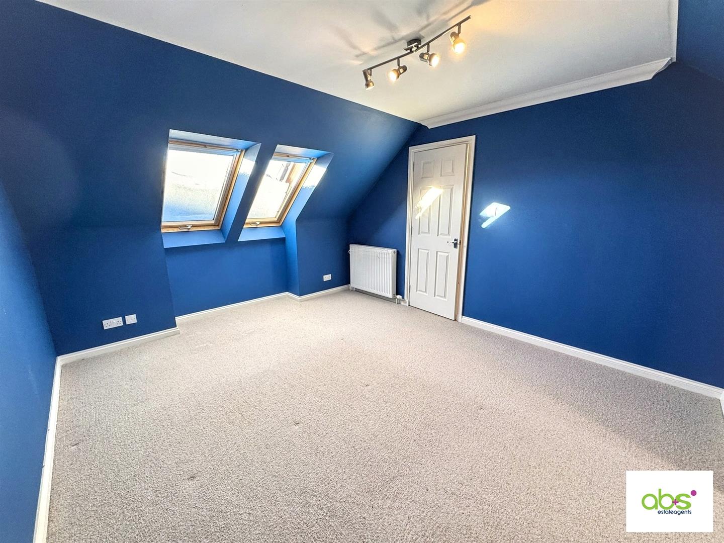 Second double bedroom with rear facing double dormer windows. Double fitted wardrobe fronted by mirrored sliding doors. Ceiling light fitting, radiator and carpet.