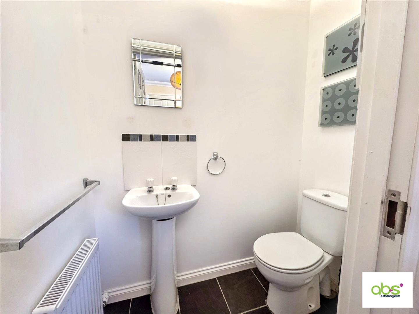 Units matching the kitchen, larder freezer and space and plumbing for washing machine. Door to rear Garden. Lockable firedoor to the Garage. Ceiling light, Xpelair, radiator and laminate tile flooring extending from the kitchen. Door to :-