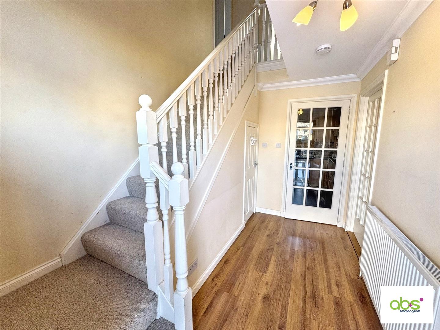 Attractive entry to the property with large under stair cupboard. Glazed doors to the Lounge and Kitchen. Carpeted staircase to the upper floor and practical wood effect flooring.