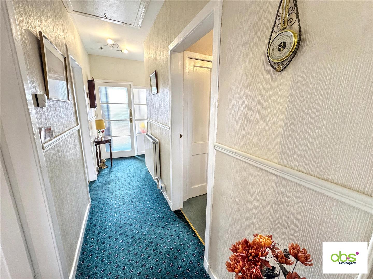 Five stone steps with handrails lead up to the part glazed front door. Vestibule with meter cupboard, coat hooks and carpet. Glazed door with matching side panel to the :-