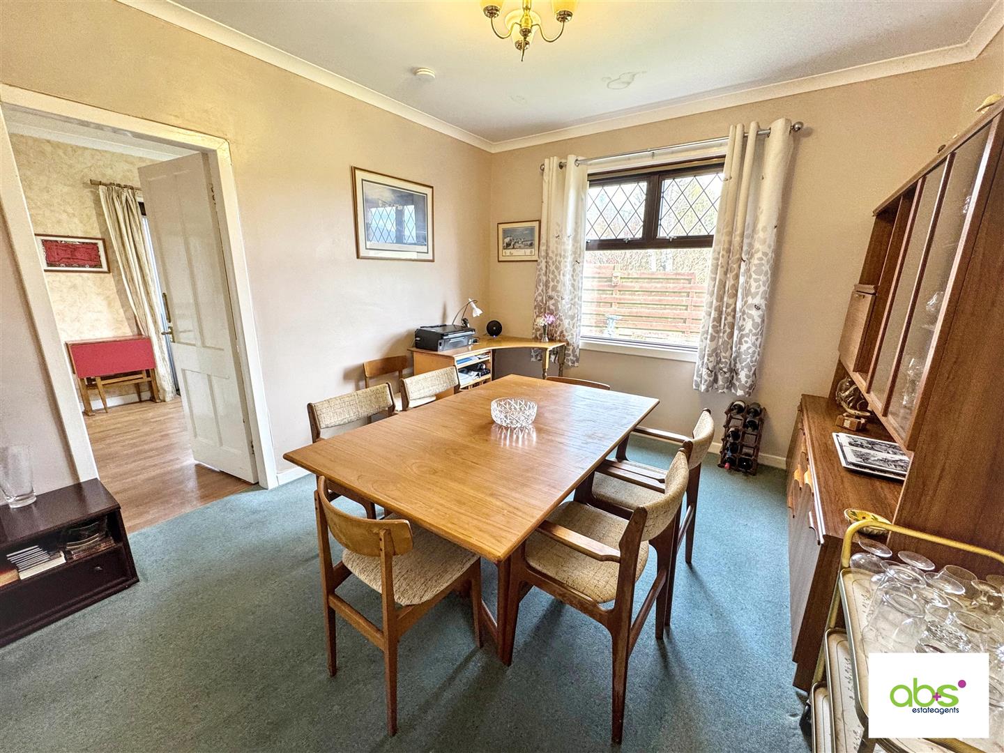 Used as a Dining Room but equally would be suitable if a 3rd bedroom was needed. Shelved cupboard. Triple ceiling light fitting, radiator and carpet.